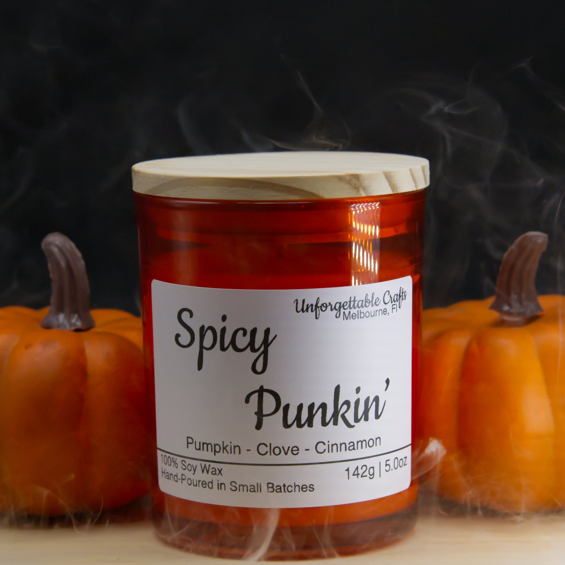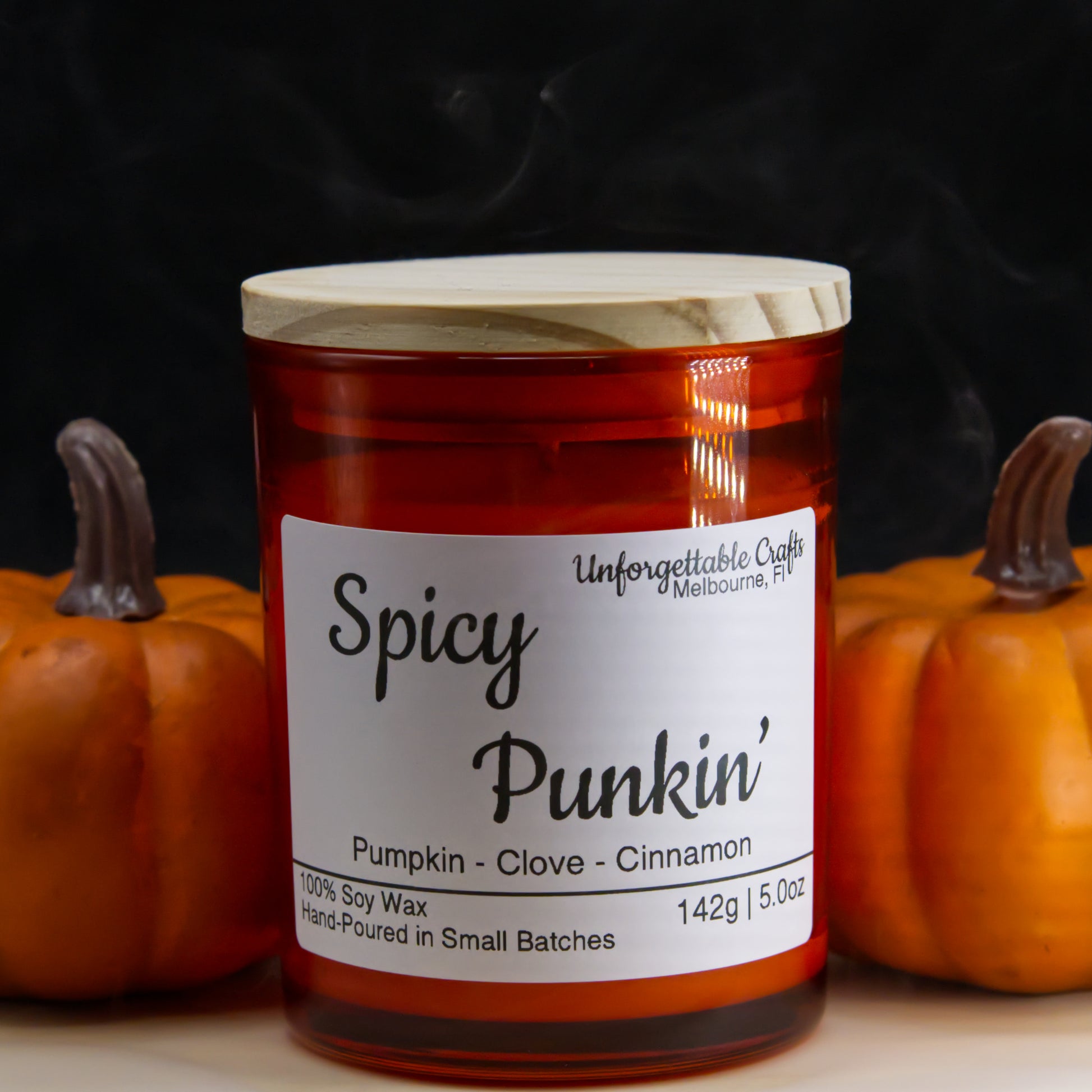 Introducing the Spicy Punkin' Candle, a limited-edition creation that captures the essence of crisp autumn days and cozy nights in. Housed in a stunning orange clear glass jar, this seasonal favorite blends nostalgic comfort with refined style.