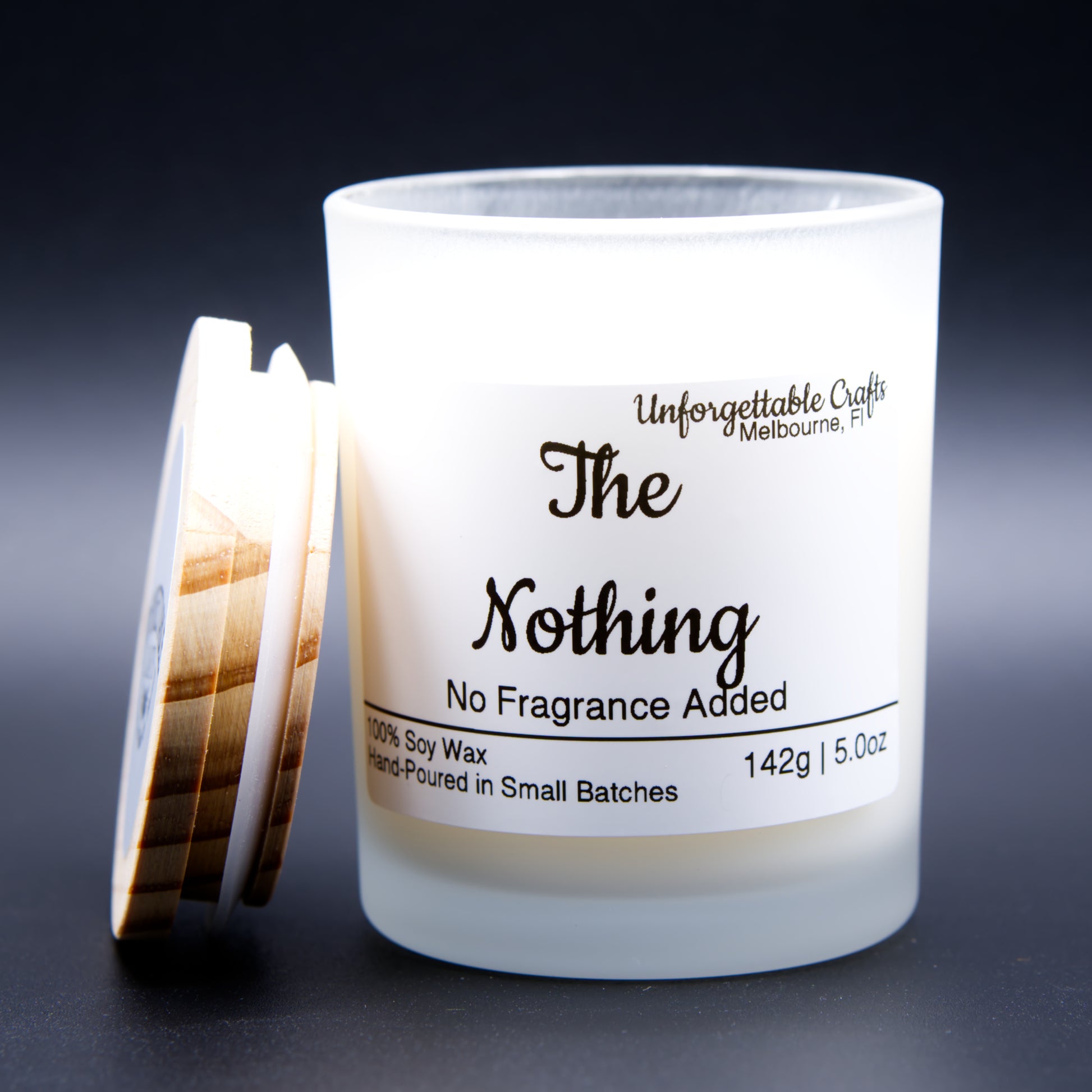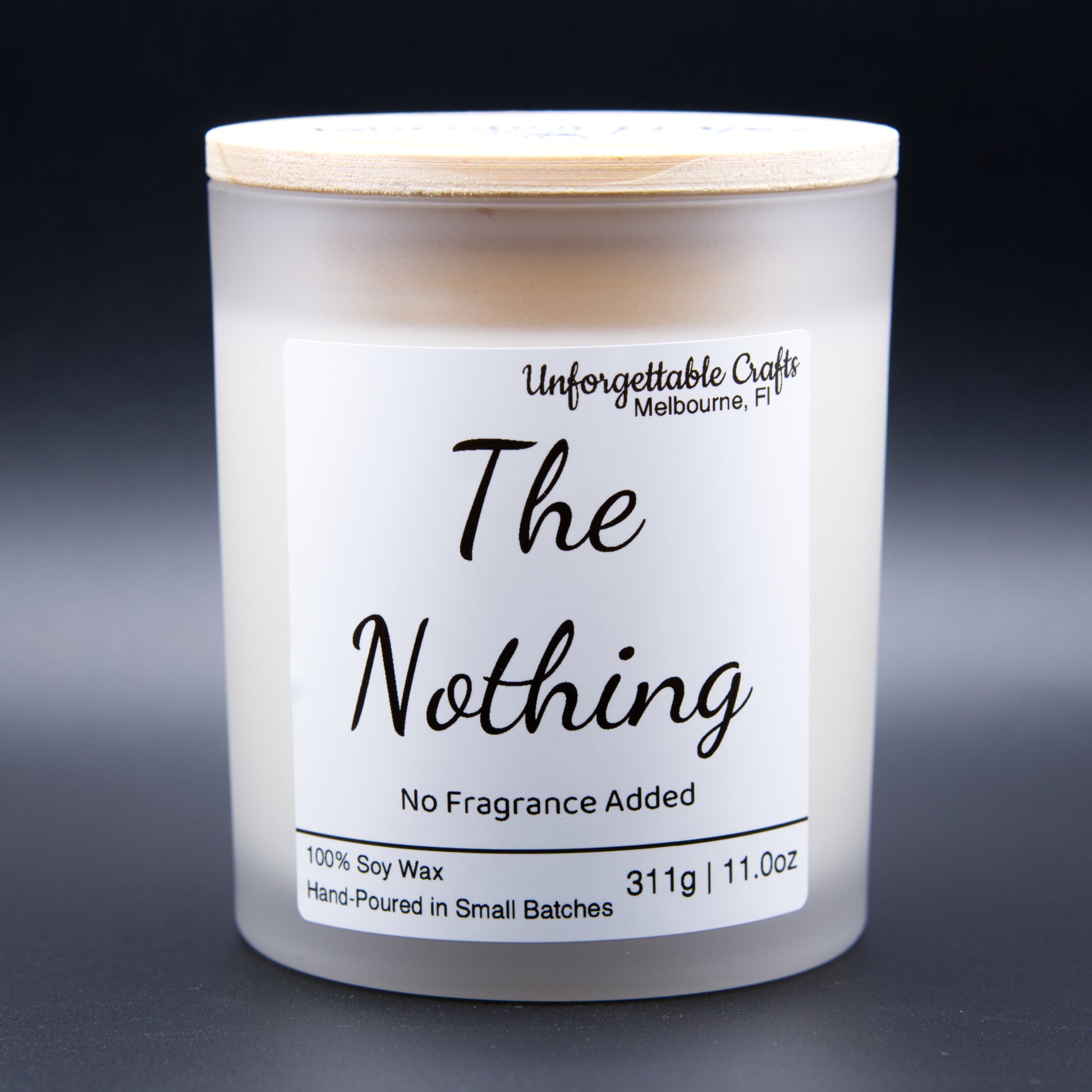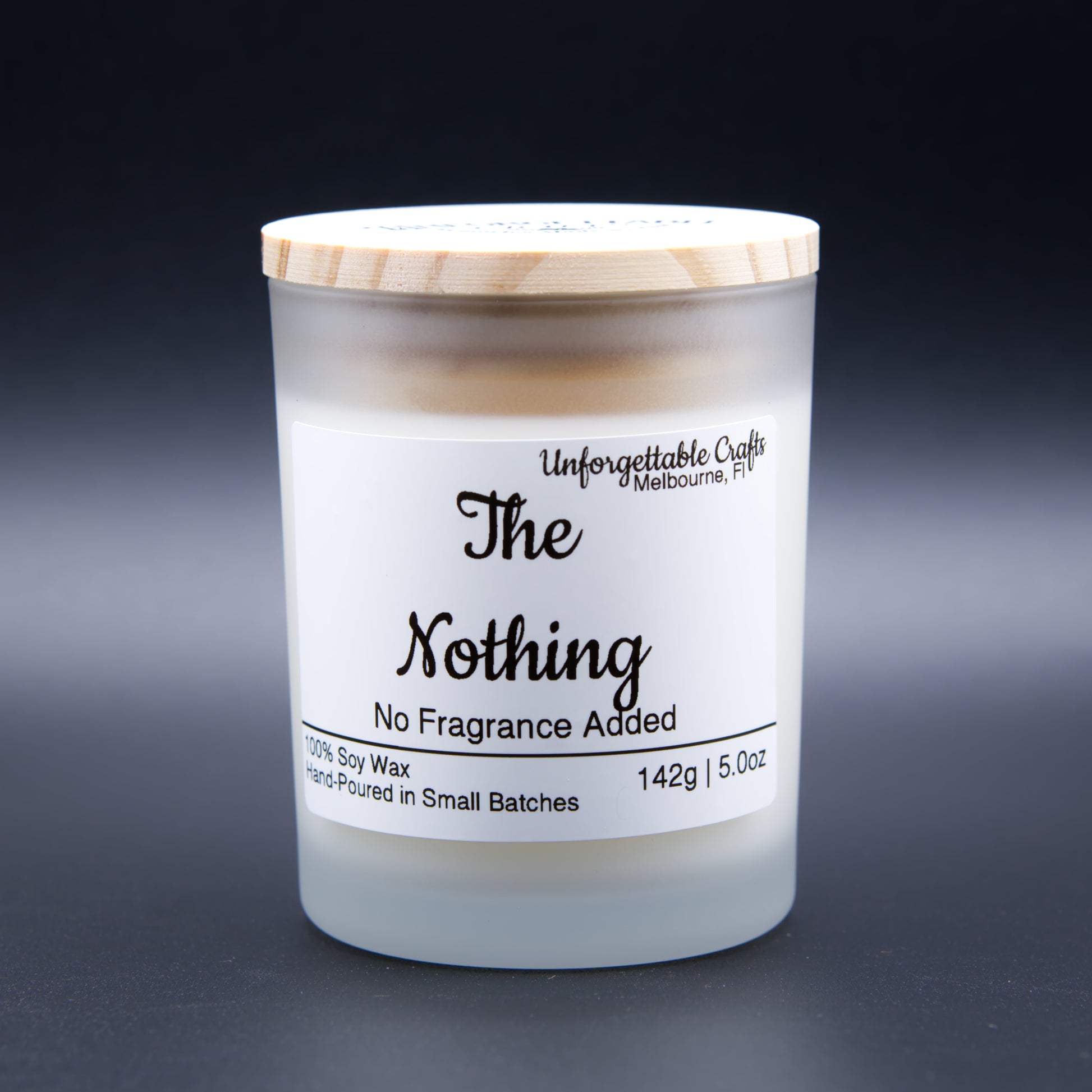 Introducing The Nothing Candle Designed for those who appreciate the beauty of simplicity. No fragrances were added to this elegant frosted glass candle allowing the soft, natural aroma of pure soy wax to gently fill your space without overwhelming your senses.